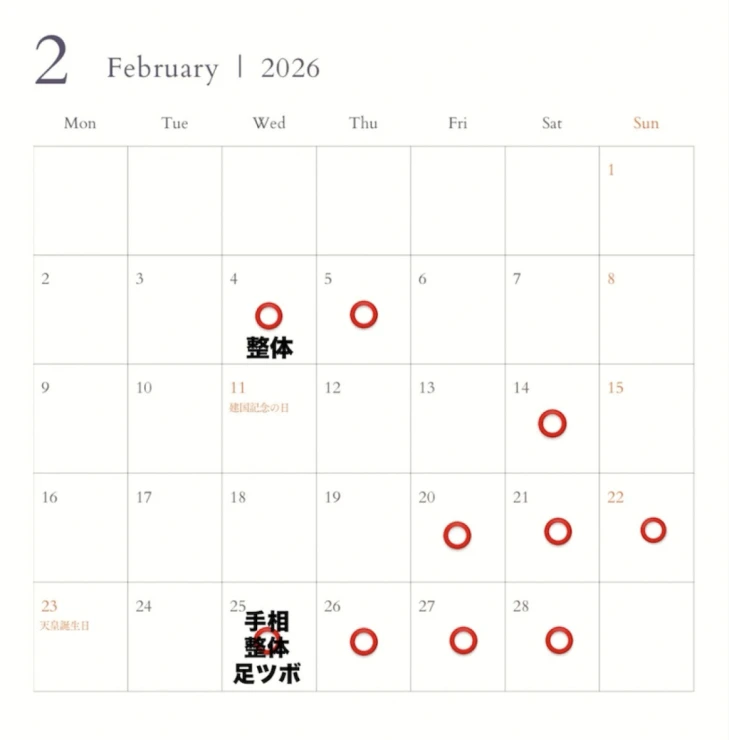 ・2月25日(水)手相・整体・足ツボ